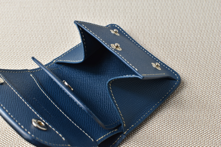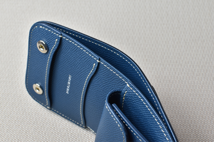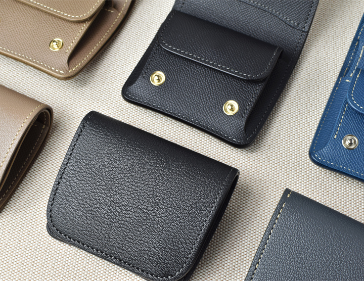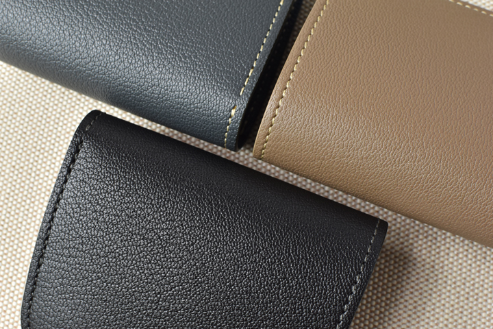 アルラン社の生産する有名な皮革の一つにシェーブルシュリー (Chèvre Sully)というゴートレザーがありますが、今回はこのゴートレザーを使用したミニ財布CASAを製作致しました。
