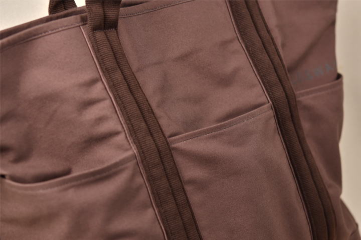 ハンドルは芯材を入れた程よい肉厚の作りで、重いものを長時間運んでも肩に負担が掛かりにくい構造になっています。