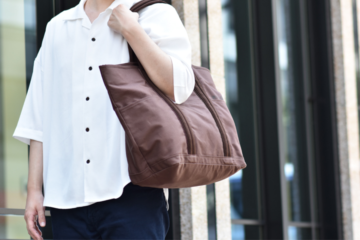 肩掛けの出来るトートバッグの形状で容量も豊富なため、沢山の荷物を運ぶことが出来ます。