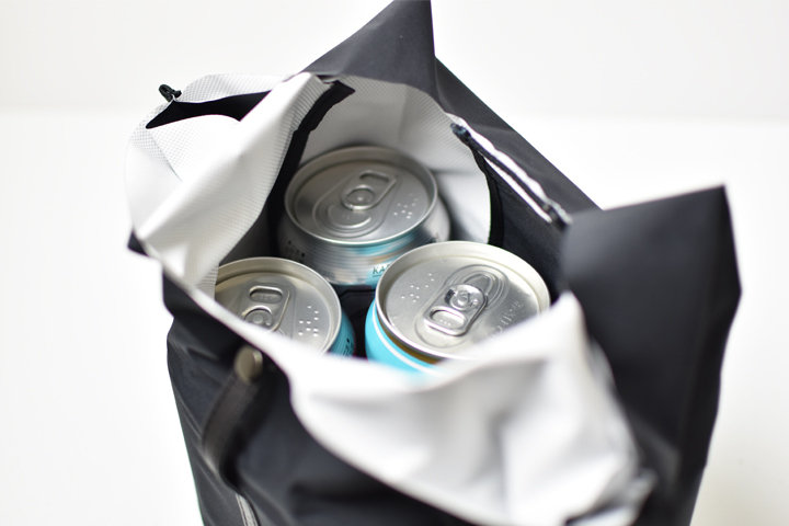 350ml缶であれば縦に4本入れてその上にまだ余裕がありますので、昼食のテイクアウト用や夜食・晩酌用のお買い物にも丁度良さそうですし、ビニール袋と違って外からは中身が見えないことも使いやすい点の1つです。