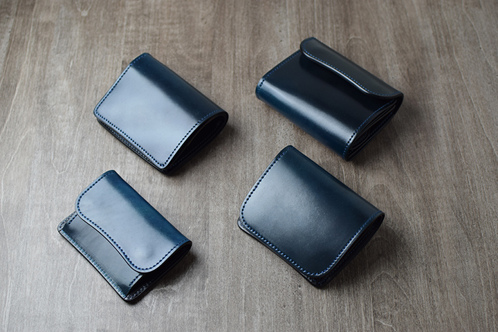 外装にシェルコードバンのインテンスブルー、内装に型押しサドルプルアップのブラックを組み合わせたシリーズです。シリーズの詳細はこちらのブログをご覧ください。