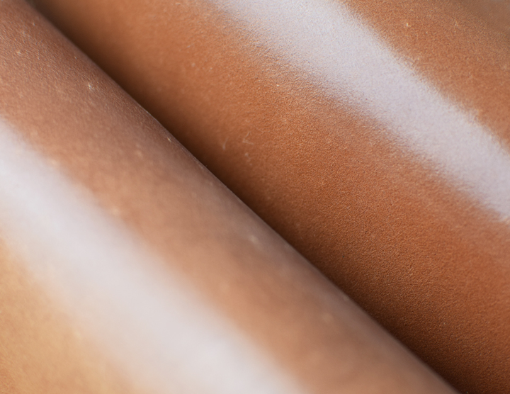 どちらも自然な仕上げをしているため、皮革表面にはキズ、シワ、血筋、シミなどがどこかしらに残ります。また、どちらの素材においても、ナチュラルカラーでは黒っぽい点などもございます。さらにシェルコードバンについては毛穴、毛羽立ちのある個所がございます。本シリーズのご購入については、事前にこうした皮革特性をご理解頂いた上で、ご購入をご検討頂きますようお願い申し上げます。