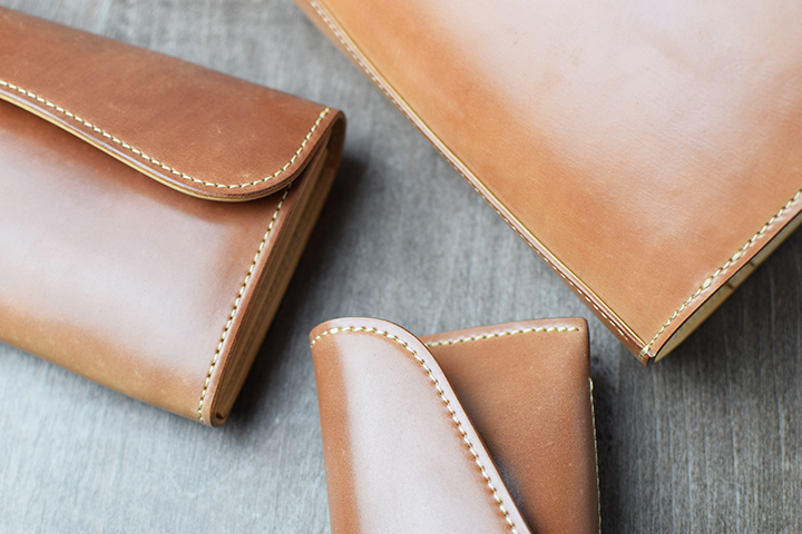 シェルコードバンのエイジングは艶だけでなく、質感の変化も魅力的です。特に手に馴染みやすい形状のCYLINDER-Sは、ご使用頂くことで、もっちりしたシェルコードバン特有の質感をお楽しみ頂けます。 少しご案内が長くなりますので、今回はここまでとさせて頂きます。残りの5品と全体の販売方法については、次回ご案内させて頂きます。