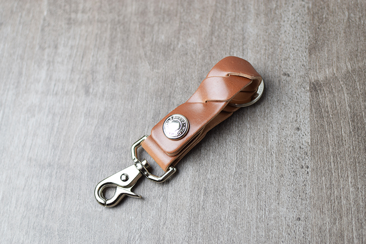 シェルコードバンを編み込んで製作したキーホルダーです。WILDSWANSでは珍しい縫製を施さない仕様ということもあり、比較的スッキリとした見た目です。小さなアイテムではありますが、強度が高く、永くご使用頂けます。