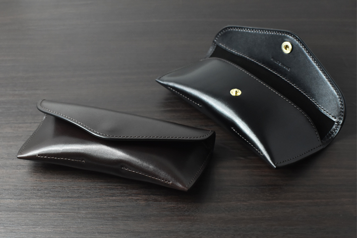 金子眼鏡株式会社とのコラボレーションで誕生した眼鏡ケースを、サドルプルアップで久しぶりにご用意させて頂きました。1枚の革で眼鏡をぐるっと包み込み、ホックでフラップを留める形状には、WILDSWANSらしい丸みを帯びたディティールが取り入れられています。
