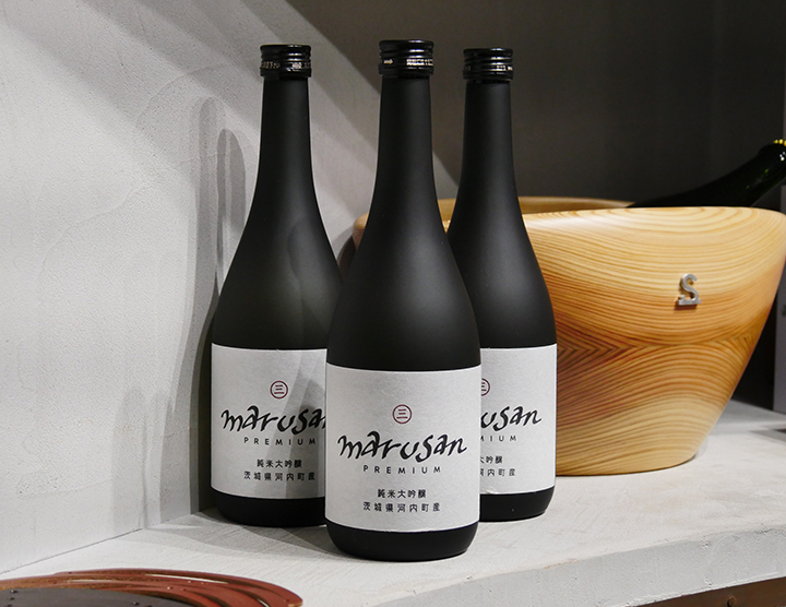 マルサンプレミアム純米大吟醸はWILDSWANDSのアトリエショップ「marusan」のオリジナルの日本酒で、原料である酒造好適米には、WILDSWANSのアトリエが所在する茨城県河内町で栽培された500万石が使用されています。