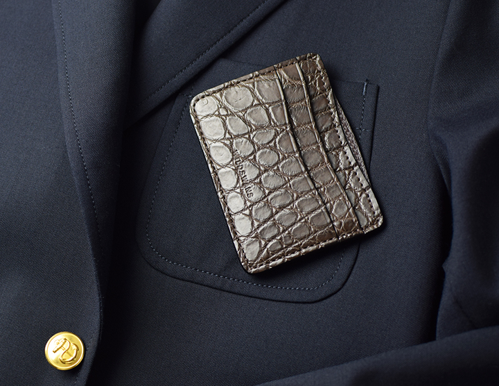スマートなカードケースEDWARDは、ジャケットのポケットなど、あらゆる場所に収めることができます。クロコはフォーマルにも相性が良いのでビジネスシーンでの活躍も期待できます。