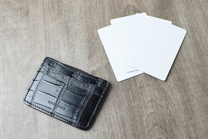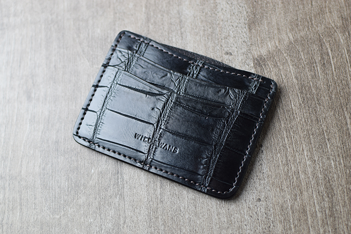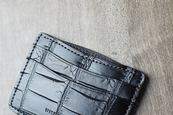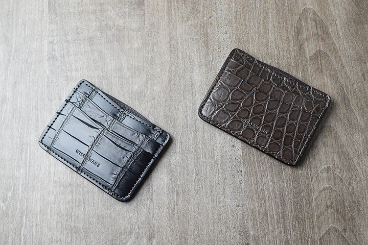 EDWARDは、WILDSWANSの新しいカードケースです。今回メイン素材にはクロコを使用しますが、WILDSWANSで主に使用しているクロコは、アフリカ原産のナイルクロコです。ナイルクロコは比較的斑柄が大きく、均等で見た目の美しくバランスの良いクロコです。