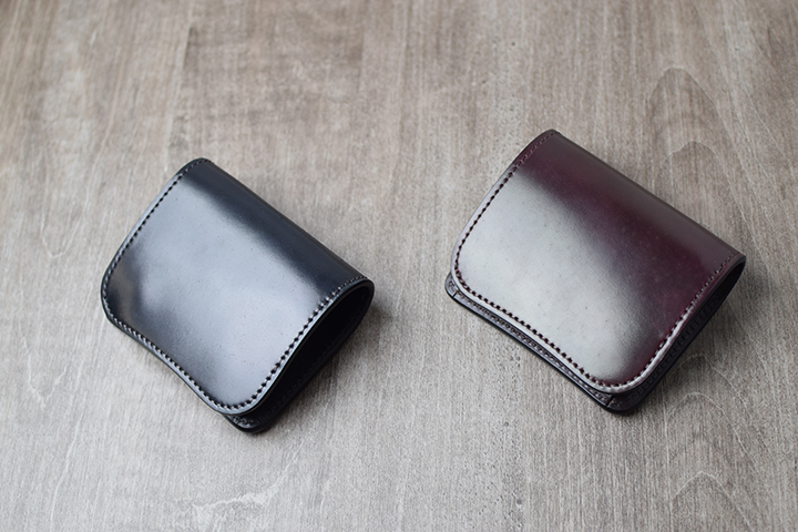 一つ目は、シェルコードバンです。高級紳士靴にも用いられるシェルコードバンは、キメが細かくシワになりにくい皮革です。同時に曲げ伸ばしや引き裂きにも強い、高い耐久性も備える皮革です。内装はアメリカ牛革のイングリッシュブライドルレザーです。使用しても皮革のコシが抜けにくい耐久性に優れた皮革です。