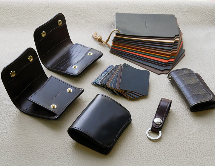 WILDSWANSでは、ウォレットからステーショナリーまで幅広く革小物をご用意しておりますが、定番製品に採用している皮革やカラー以外を組み合わせ、オリジナル革小物を注文して頂けるパターンオーダーがたいへん人気の高いサービスとなっています。