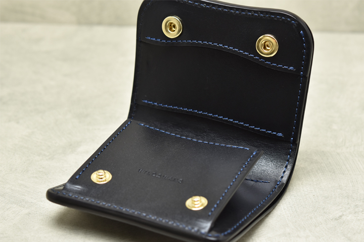 ※コインケースフラップを動かす際には、必ずコインケースのフラップを開いて(ホックを解除して)から動かして下さい。 閉じたまま無理に動かしてしまうとコインケースのマチの型が崩れて正常に収まらなくなる恐れがあります。