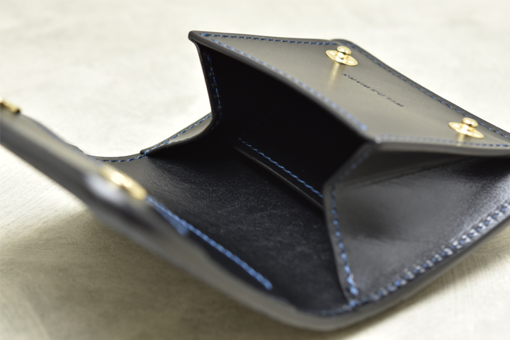 コインケースの両端にはマチが設けられておりますが、リニューアルによってマチの裏側には裏張り用の革が貼られ、メンテナンスのしやすさや、見た目にも高級感が生まれる仕様になっています。