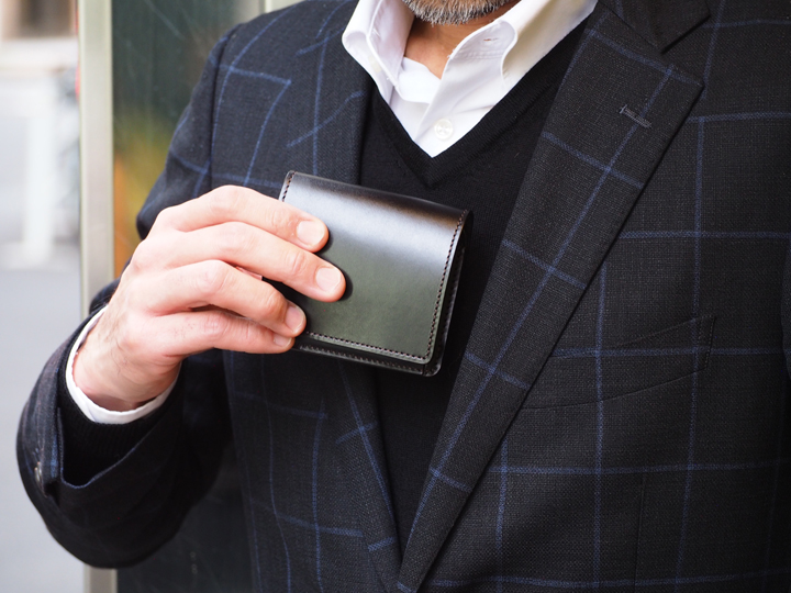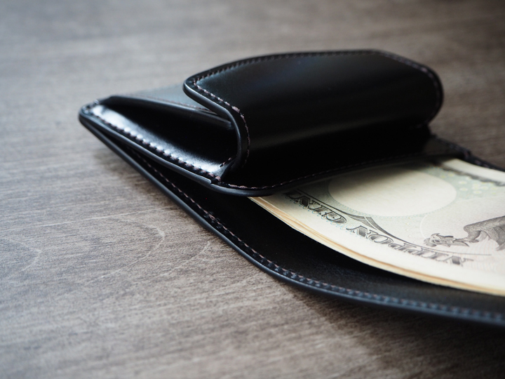 ボリュームの出やすい要素をなるべく省いたシンプルな構造ゆえに、カサ張ることなく、多くの紙幣、カード、コインを収納することができる優れたアイテムです。