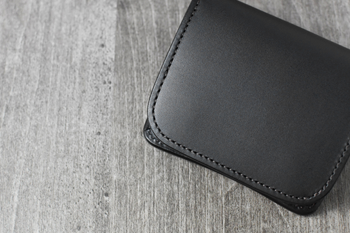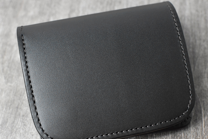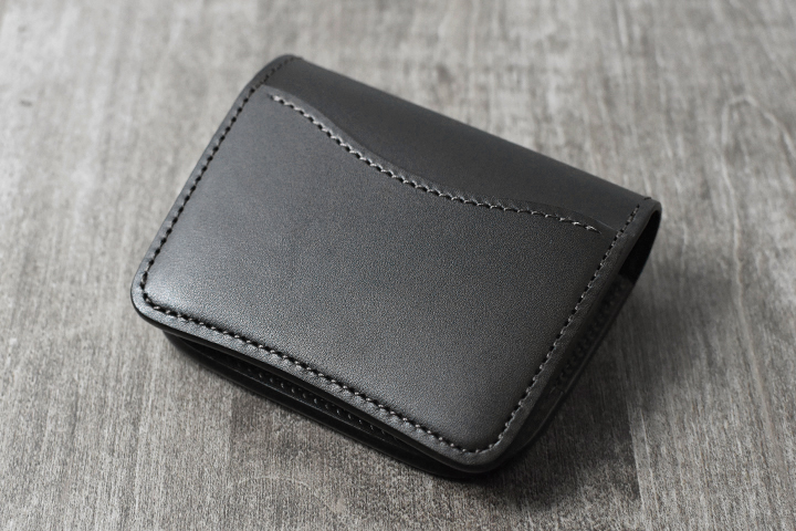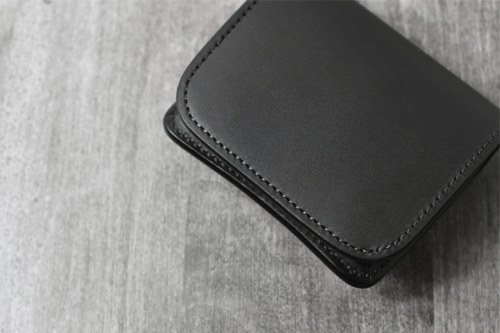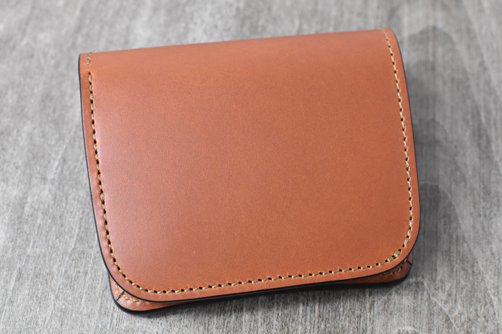 こちら一つあれば事足りてしまう万能ミニ財布です。新品の状態では革のハリ感が強く少し厚みを感じますが、随所に丸みを持たせているのでよく手に馴染みます。