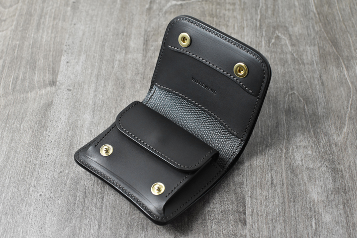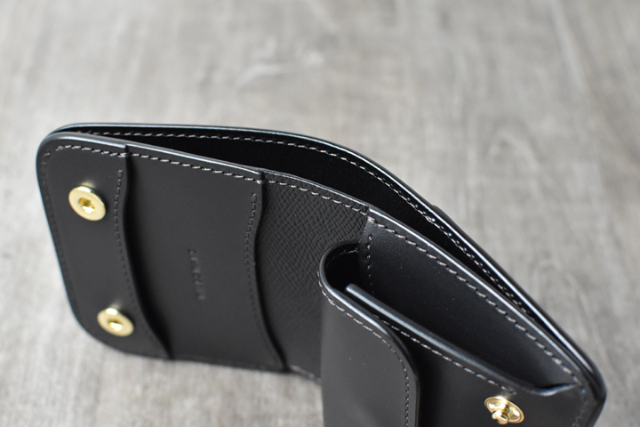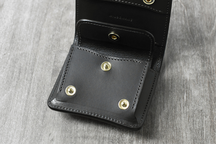 コインケースのフラップも本体と同じくホックが2点付属します。