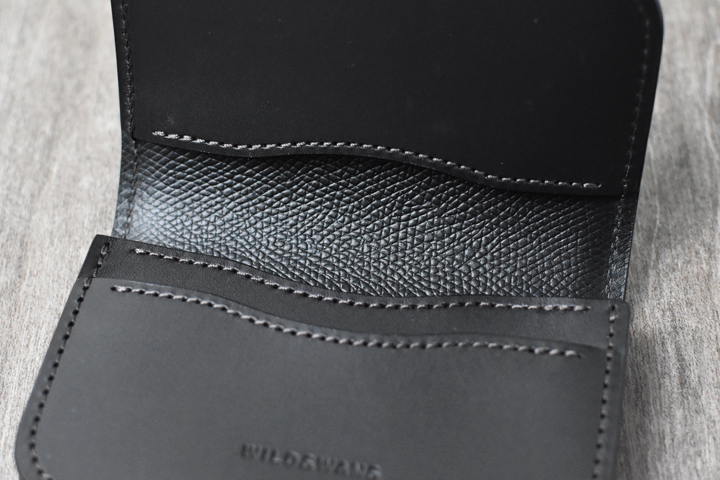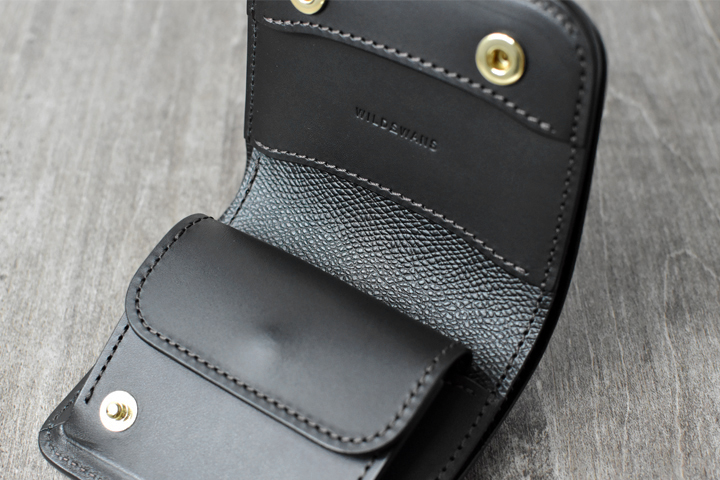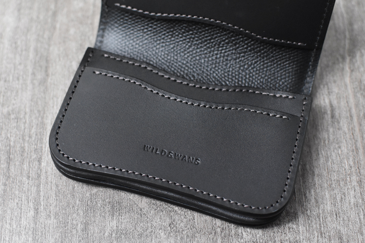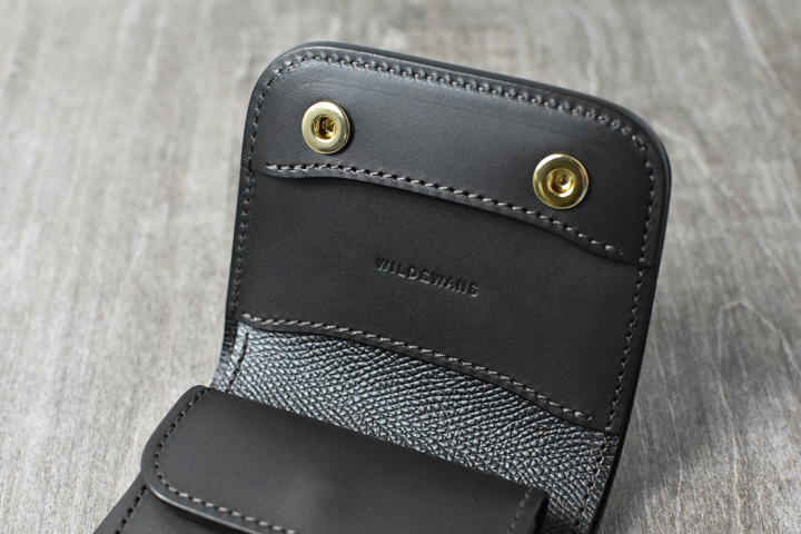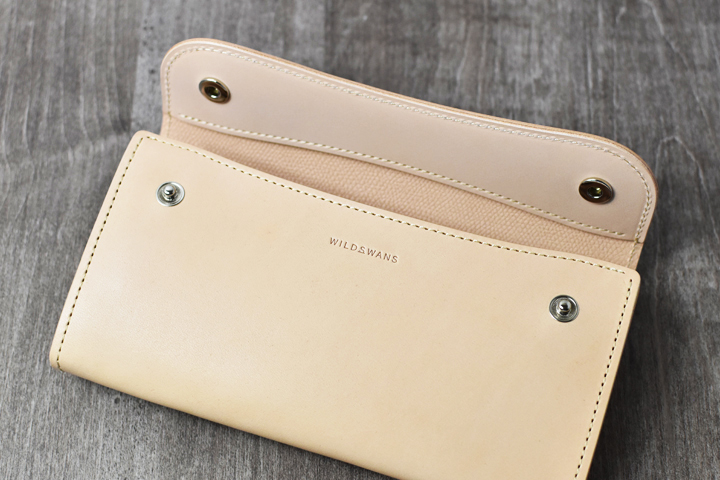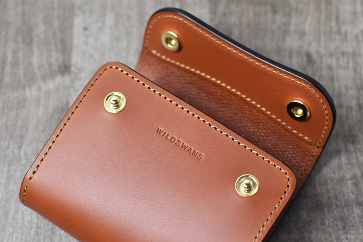 フラップを開けると、WILDSWANSロゴの刻印されたパーツとコインケースが現れます。