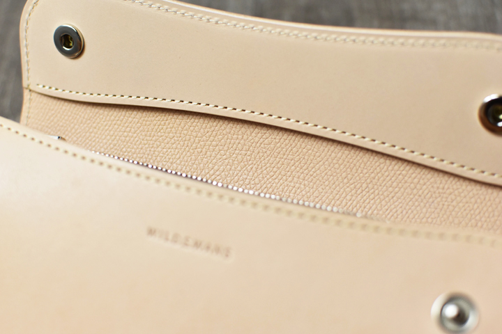 本体を留めるフラップはWILDSWANSらしい丸みを帯びたデザインで、指掛かりが良く、破損も起こり難い形状です。