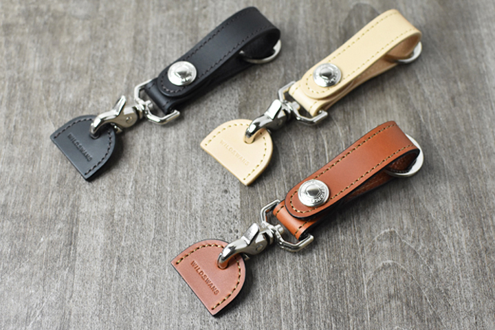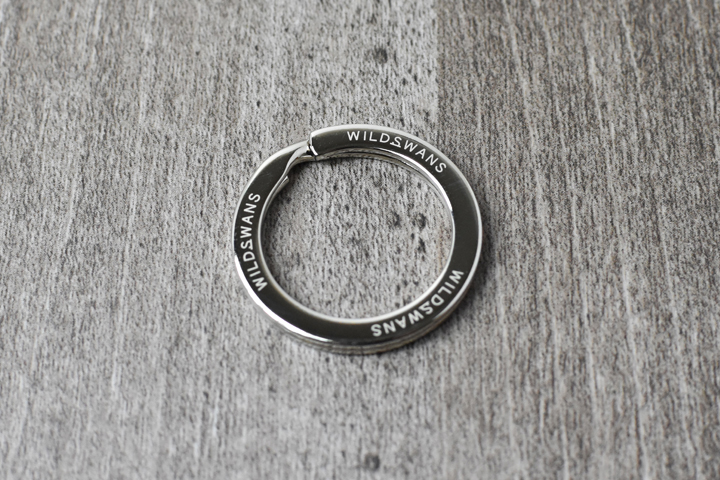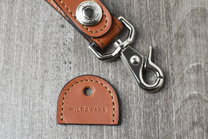 帯部分にはWILDSWANSロゴ入りの2重リングが付属しますので、こちらや帯本体をそのままベルトループや鞄などに通してお使い頂けます。