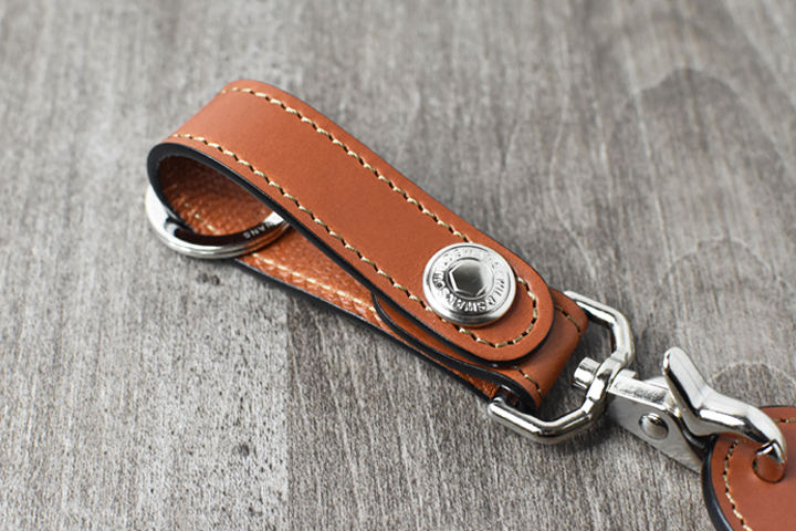 小さいながらも細部まで縫製、コバ磨きが施されたキーホルダーです。