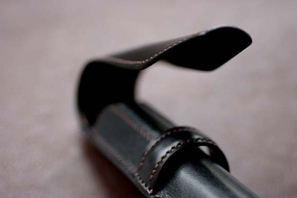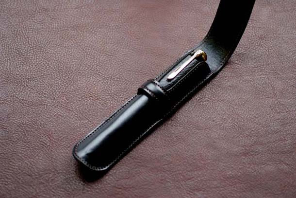 ペンクリップを挟む部分の革は、耐久性のある摩擦に強い型押しのカーフを使用しています。