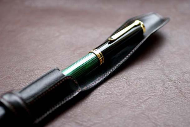 新作の1本差し万年筆ケース・PEEK-A-BOO1は真横から見るとこんな感じです。