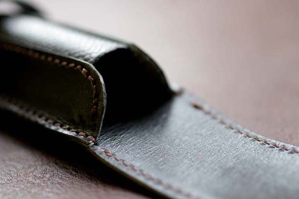 ケース本体の素材には堅牢なベルギーの皮革・サドルプルアップを使用しています。使う程に風合いを増していきますので、何年も使っていくと大変迫力が出てくるでしょう。