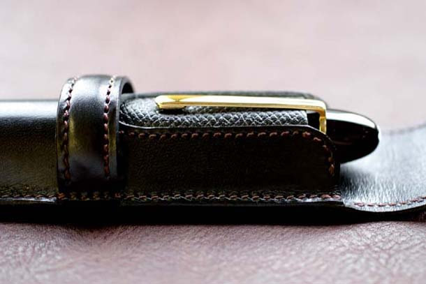 クリップを挟み込まない場合は上の写真のように収めますが、このペンケースの良いところはクリップを挟み込まなくてもケース内でペンがグラつくことなくフィットするところです。