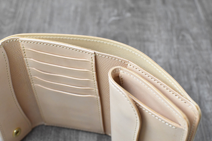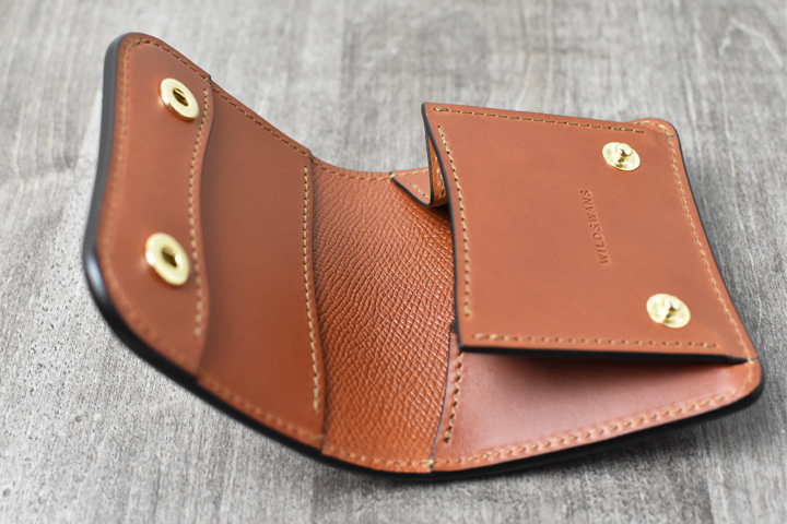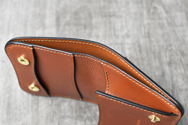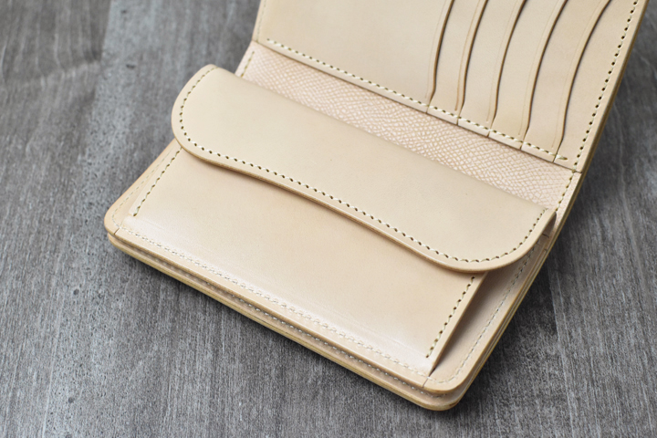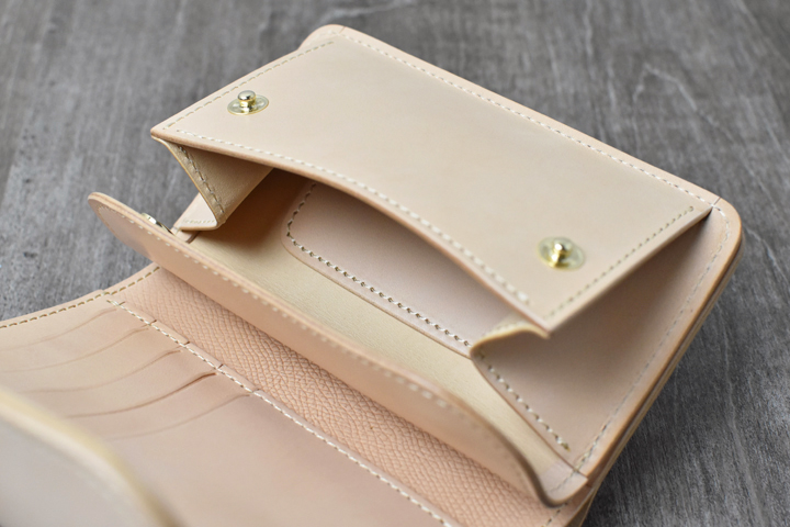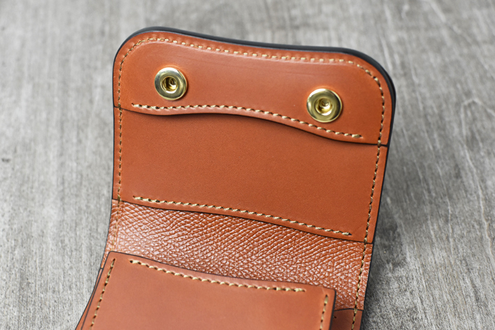 コインケースフラップもメインフラップと同じ流線形のデザインです。