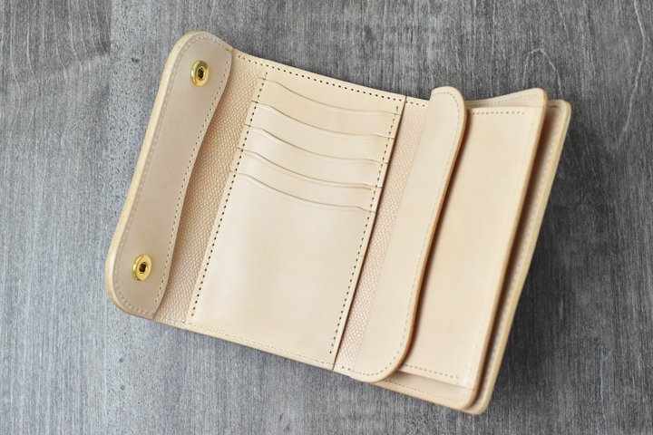 PALM-V2では、コインケースの奥側に型押しのアーナル社製サドルレザーを使用しております。