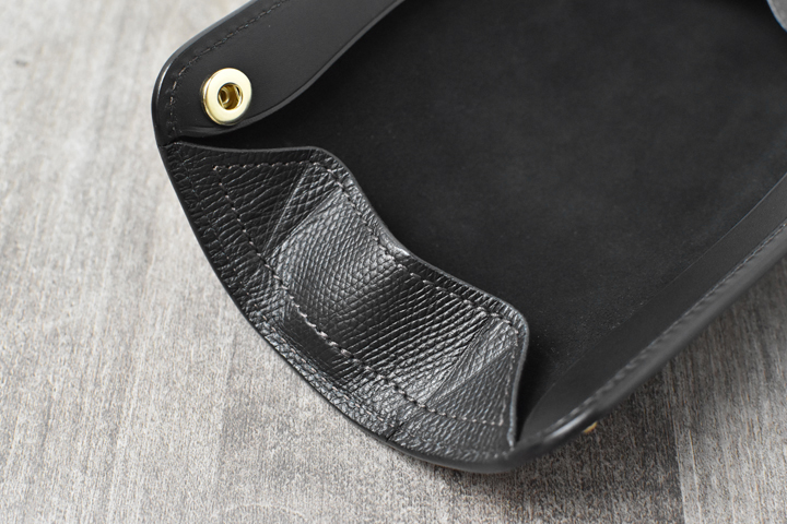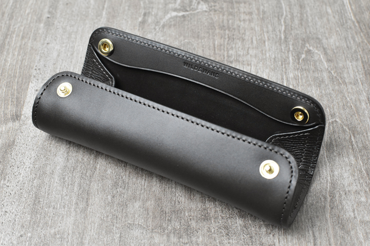 このスウェードは、内装が傷付くことを防ぎながら、収納するペンにも優しい仕様になっています。ペンの太さや形状にもよりますが、5本程度のペンの収納が可能です。