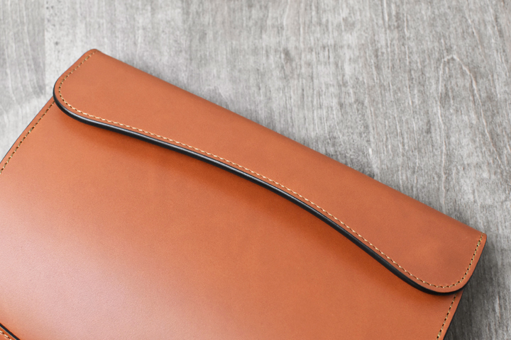 フラップ部分のカーブは、製品を永くお使いいただけるよう壊れにくさを追求して考えられたこだわりのディティールです。