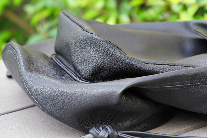 肌触りが良く、柔らかな毛足は中に収納して頂くものを保護する役目となり、革小物をいれ、バッグ自体を揉む事で乾拭きを行うのと同様の効果となります。