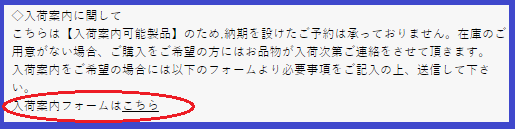 赤い丸囲み部分の「こちら」をクリックして頂きますと入荷案内フォームに移動します。
