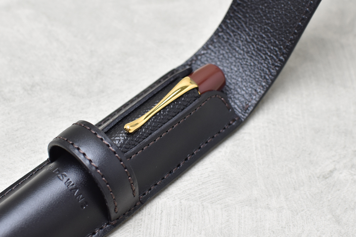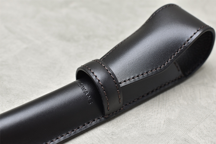万年筆1本のみを収納するためのケースで、シンプルでありながら皮革の魅力を活かした技巧的な構造が特徴です。