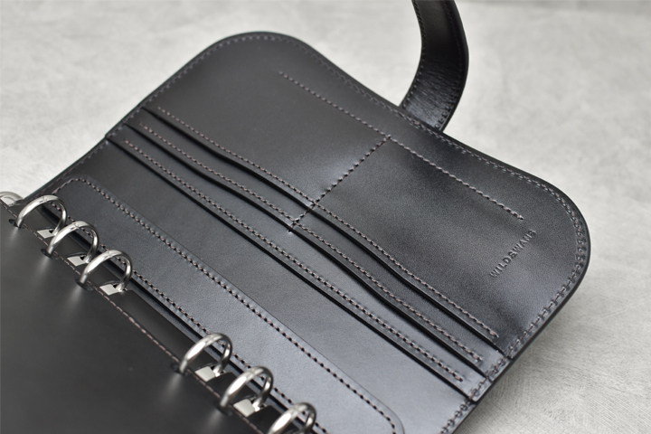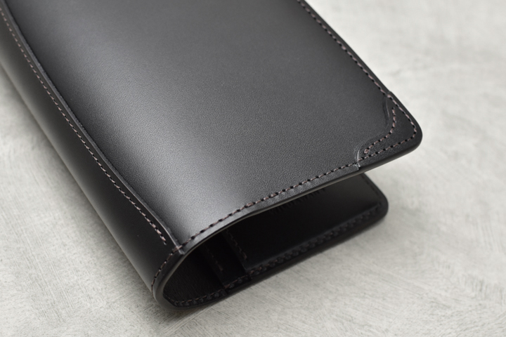 OWLの背表紙部分には背当てが取り付けられております。厚みを出して耐久性を高め、更に持つときに背当てパーツの段差が指に掛かってしっかりと掴める効果もあります。