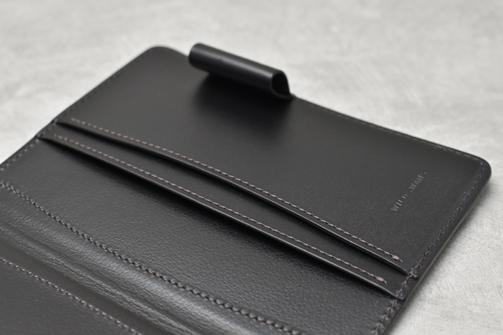 2枚の内の一枚はペンホルダーが付属しておりますので、細身のペン類を持ち運ぶことも出来ます。