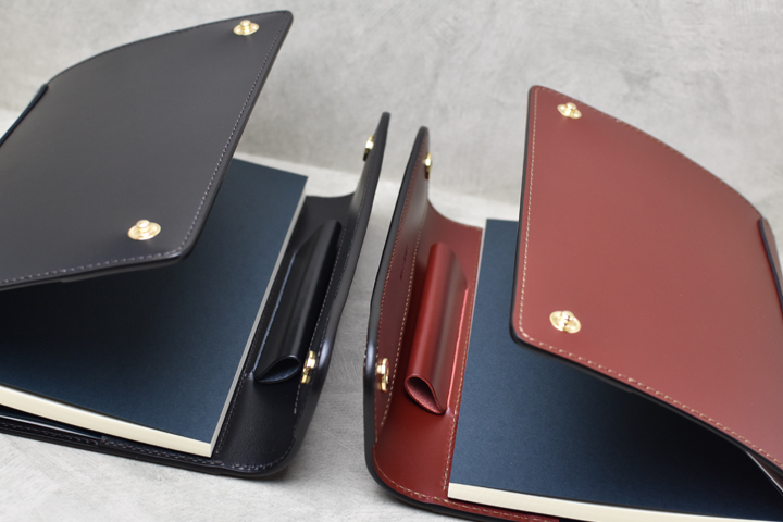 ノートとペンを収納可能なノートカバーOWL。A5とB6のそれぞれのサイズに対応した堅牢なカバーです。