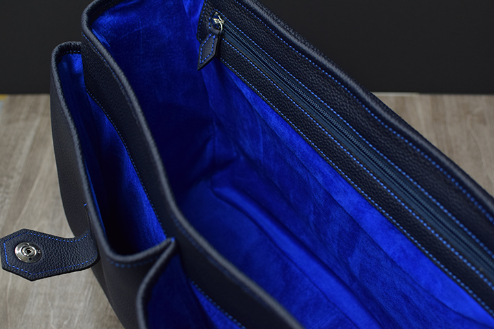 内装は心地よい手触りのピッグシルキーが採用されております。また大容量の収納スペースを備えており、二泊三日程度の出張でも必要なアイテムを十分に収納することができます。