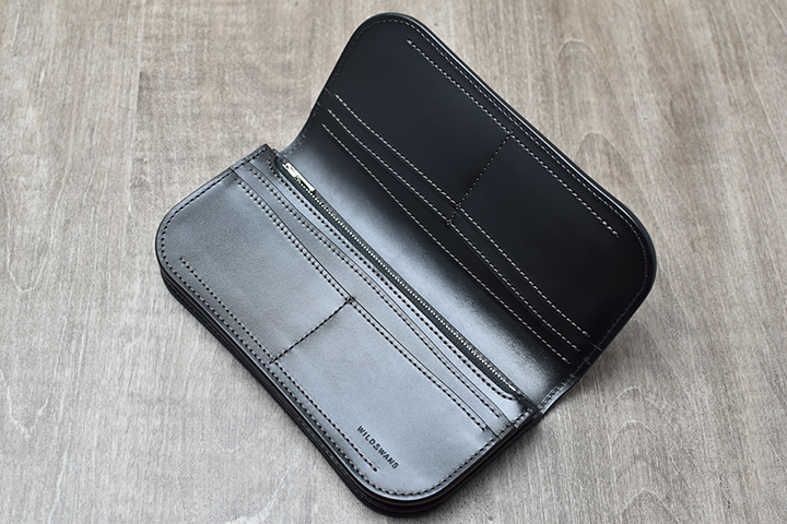 内装です。SURFS1同様に随所にWILDSWANSらしい、なだらかな曲線が採用されています。基本的にはカード収納スペースとコインケースに分かれますが、配置や仕様は若干異なりますので、この後その部分についてご説明します。