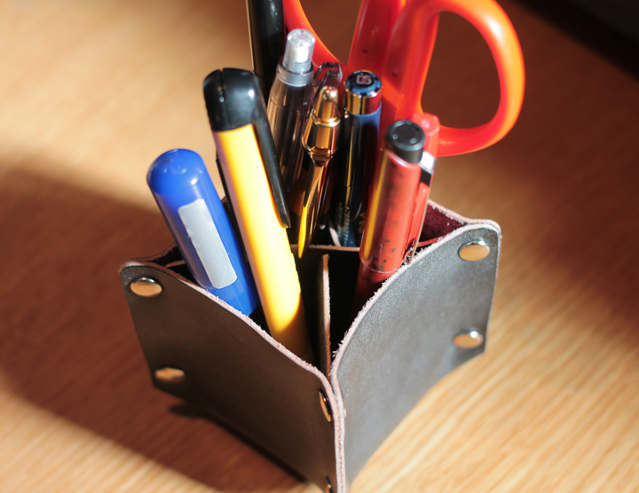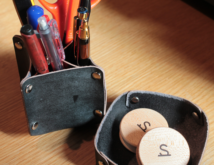 ペン立て等にご使用いただく場合は小物入れのふたをレザートレイとしてご使用いただく事も可能です。