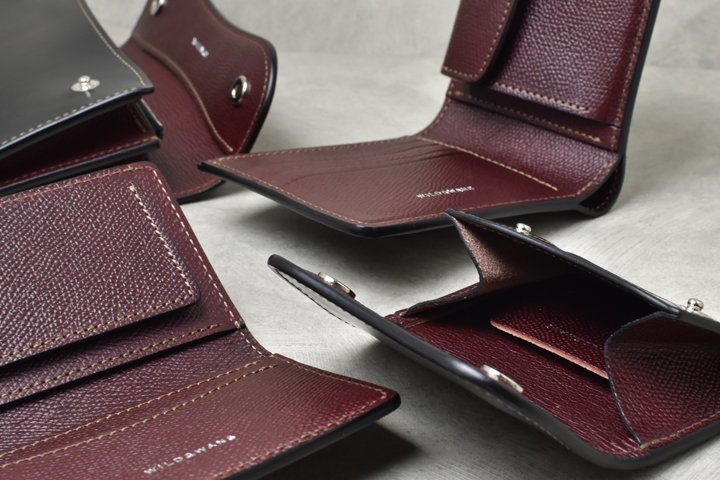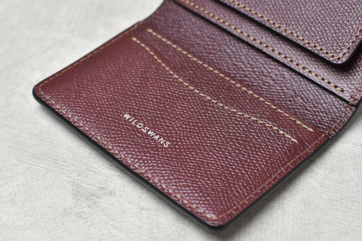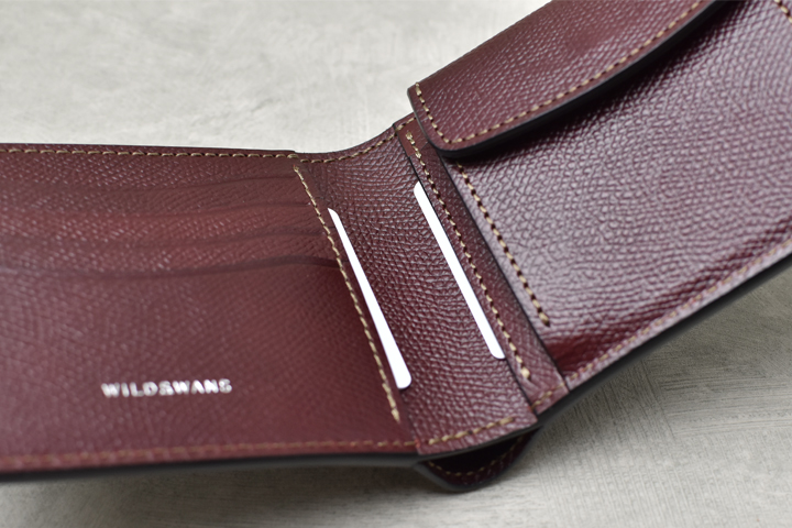 WILDSWANSには珍しく角が直角に切り落とされたようなシャープなデザインが特徴です。WILDSWANSの小銭入れ付きのラインナップにはもう一つGROUNDERというモデルがありますが、HENRYはGROUNDERよりもスリムで、全体的なデザインや内装の作りなども含め、フォーマル、ビジネスといったシーンでの使用をイメージしたモデルです。