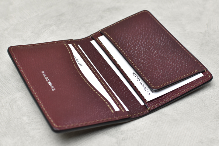 ジャケットの内ポケットやシャツの胸ポケットに入れても不自然に膨らまないスリムな名刺入れです。