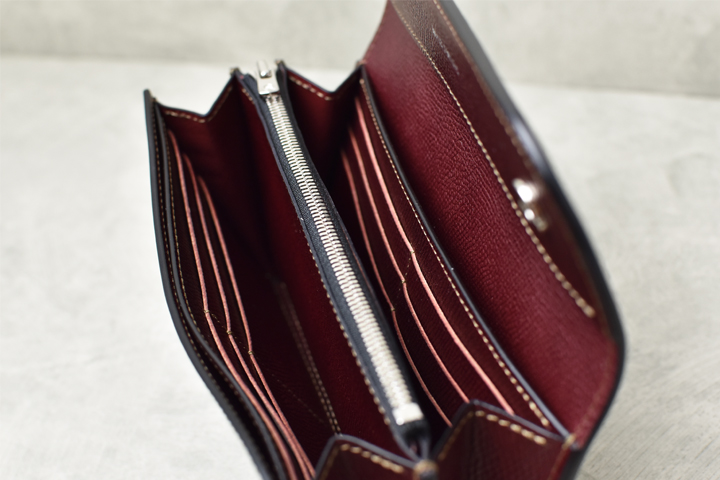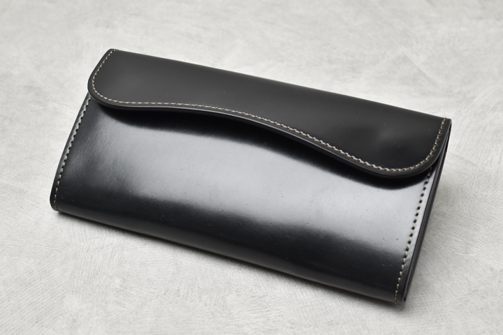 迫力の大型長財布です。見た目通りの充実した収納量を備え、細かな仕分けも容易なモデルで、大判ならではのダイナミックな経年変化もお愉しみ頂けます。