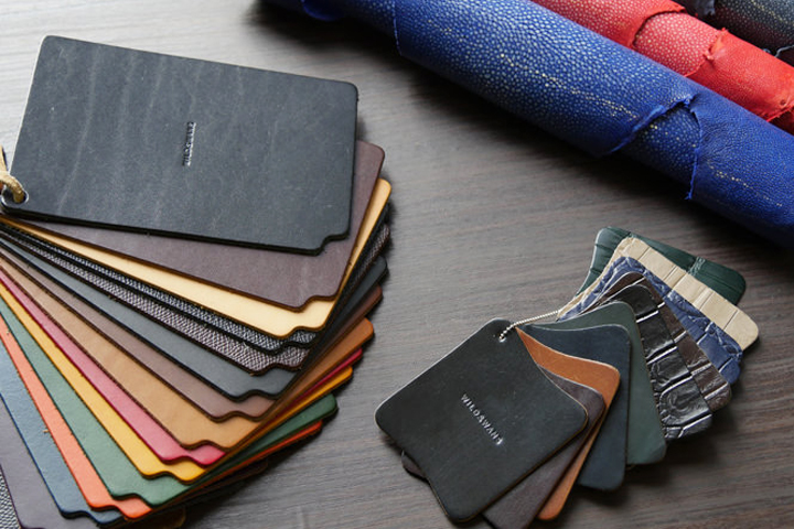 WILDSWANSでは選択肢の中から革や糸色などをお好みの組み合わせで製作するパターンオーダーのご注文を承っています。パターンオーダーはWILDSWANSの直営店にご来店頂くか、事前のご予約後、リモートでご注文して頂く方法がございます。