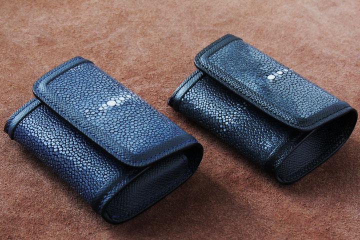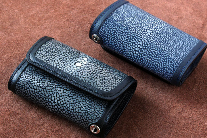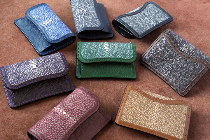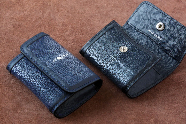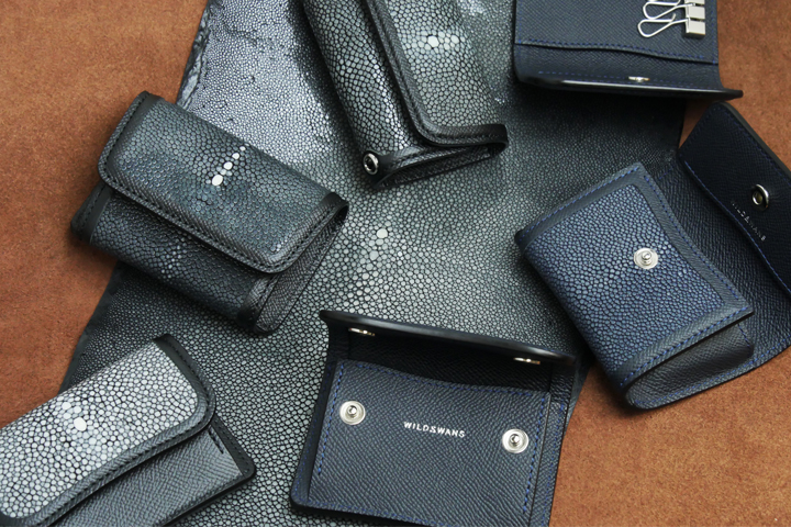 続いてご紹介するのは、WILDSWANSでは久しぶりの登場となるガルーシャシリーズです。ガルーシャとは海に生息するエイの革のことを指し、宝石のようなきらめきと滑らかな表面は、数あるエキゾチックレザーの中でもひと際異彩を放っています。