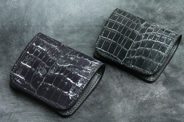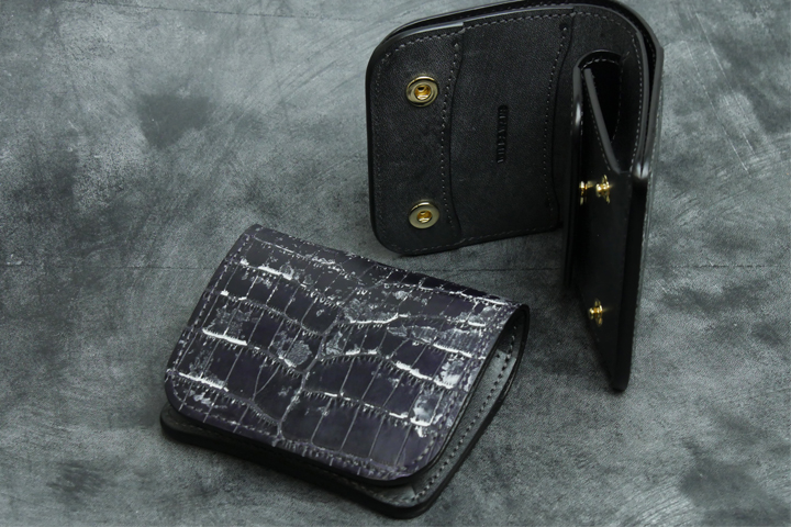 画像で使用しているのはクロコ/TONGUEのサンプル品ですが、使用を重ねることで革は馴染み、小銭などの出し入れもより容易になってまいります。
