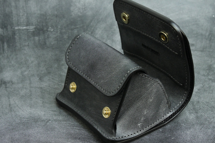 外装はぐるりと一枚革で作られた贅沢な仕様で、手のひらに収まりつつもガルーシャの存在感をしっかりと感じて頂けます。