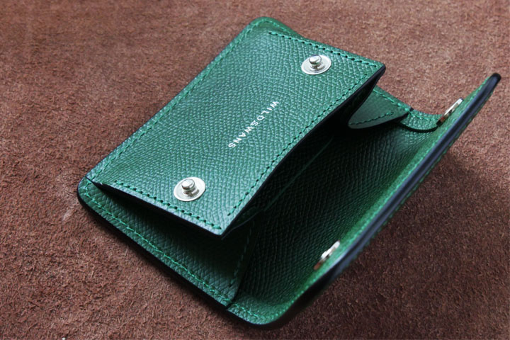 最後はグリーンです。気品のあるダークグリーンは、近年革の種類を問わず人気が高いトレンドカラーです。