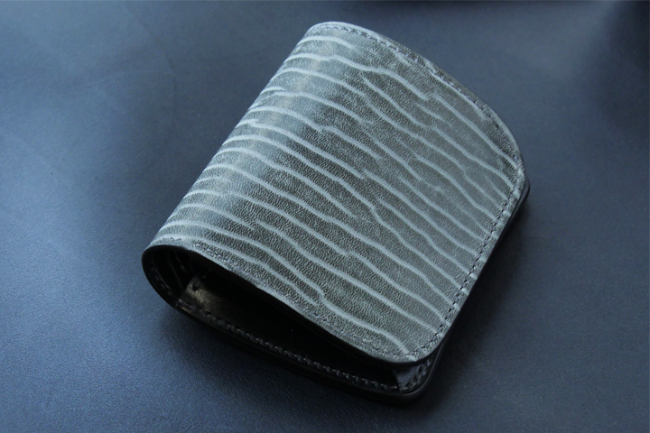 革表面には「頭張り」という皮革の凹凸の頂上部分に光沢を出すような仕上げが施され、ちらちらと光が反射する様子は水面を思わせます。