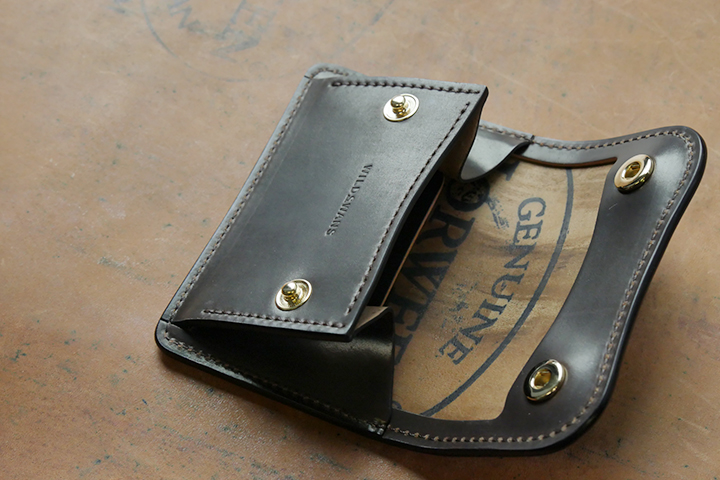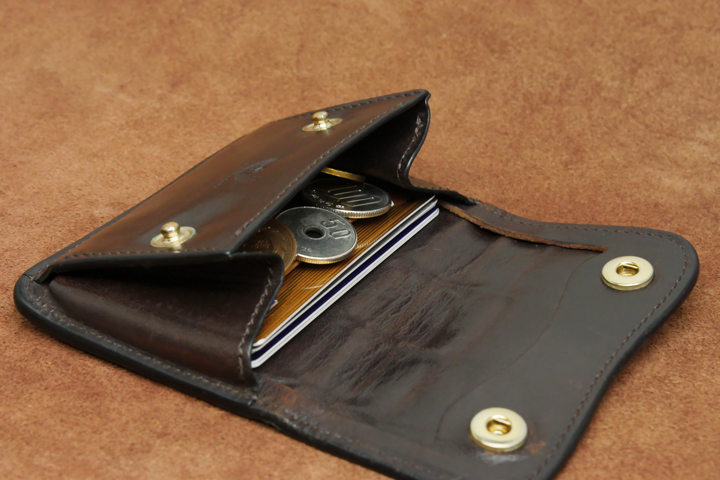どこを触ってもシェルコードバンの質感を楽しめる上に、小銭の出し入れをする度にスタンプが覗き、シェルコードバン好きの心をくすぐります。